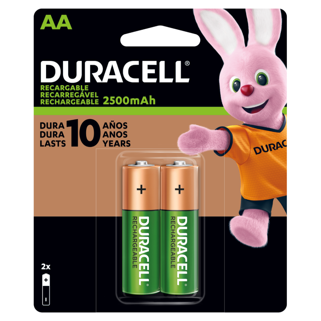 Las baterías Duracell Recargable AAX2 son ideales para dispositivos de alto consumo de energía. Son recargables, lo que las hace más duraderas y amigables con el medio ambiente.