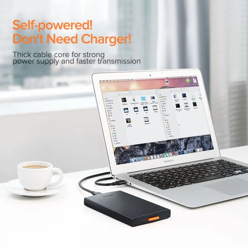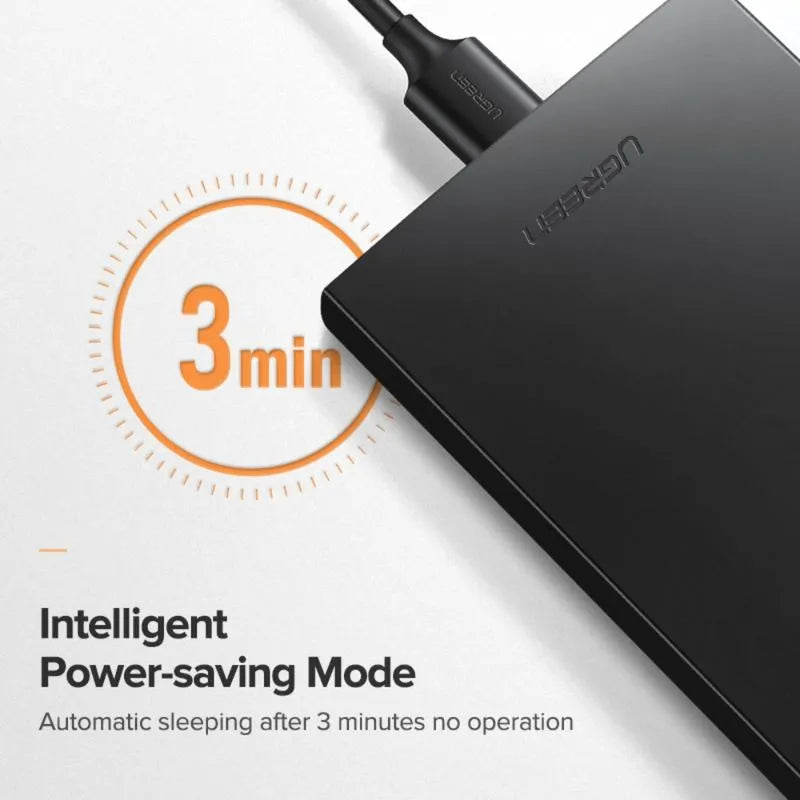 *Caja de disco duro externo portátilLa carcasa de disco duro UGREEN de 2,5 pulgadas puede conectar fácilmente su disco duro SATA de 2,5' a una PC, computadora portátil, PS4 y otros dispositivos para la transferencia de datos, ofreciendo un mayor almacenamiento de respaldo y una mejor protección para los datos. El 2,5' El gabinete protege el disco duro de rasguños externos y hace que el disco duro y SSD SATA externo sea portátil para el almacenamiento de datos. Maximice el uso de su HDD y SSD de 2,5' nuevamente, protegiendo perfectamente lo que ama y aprecia.