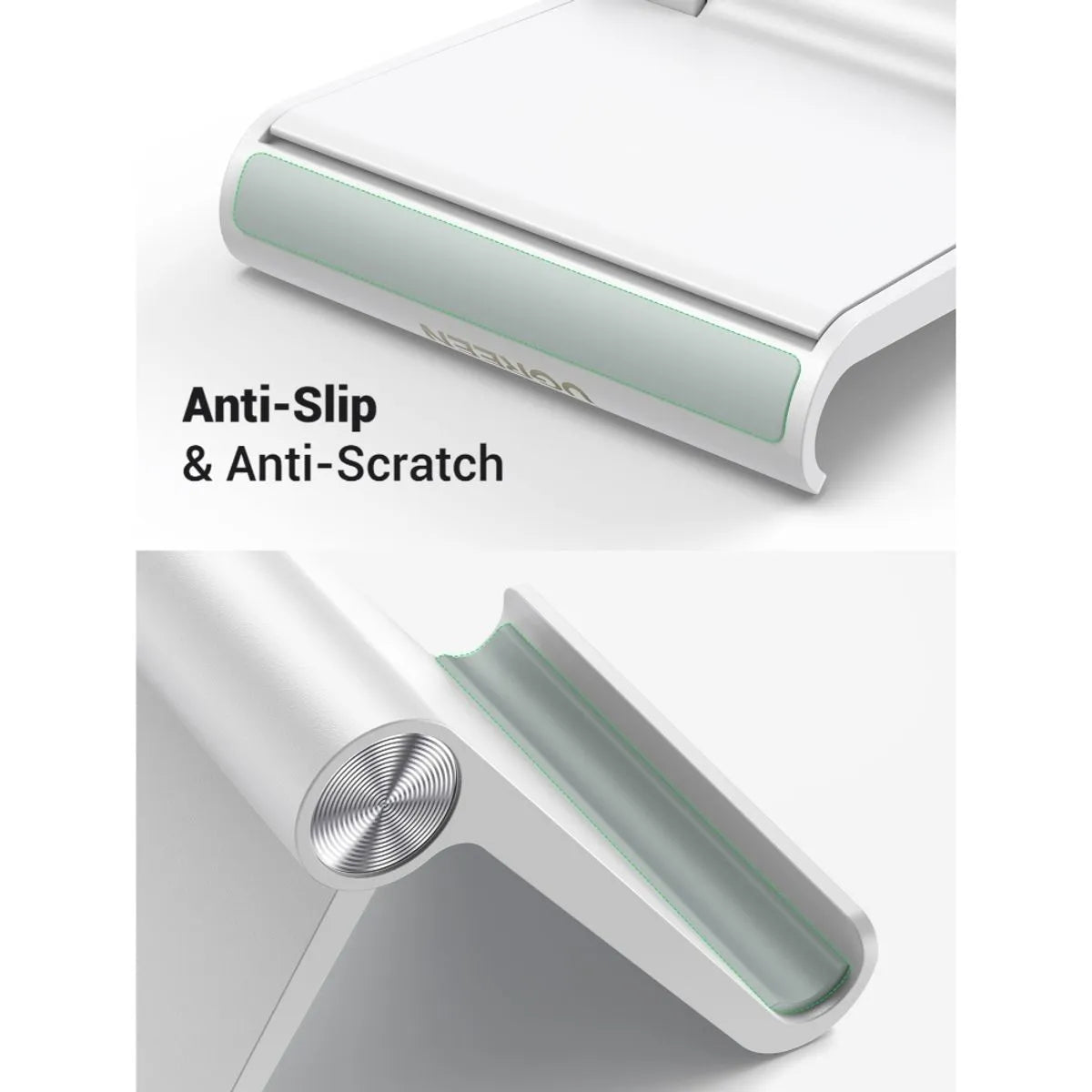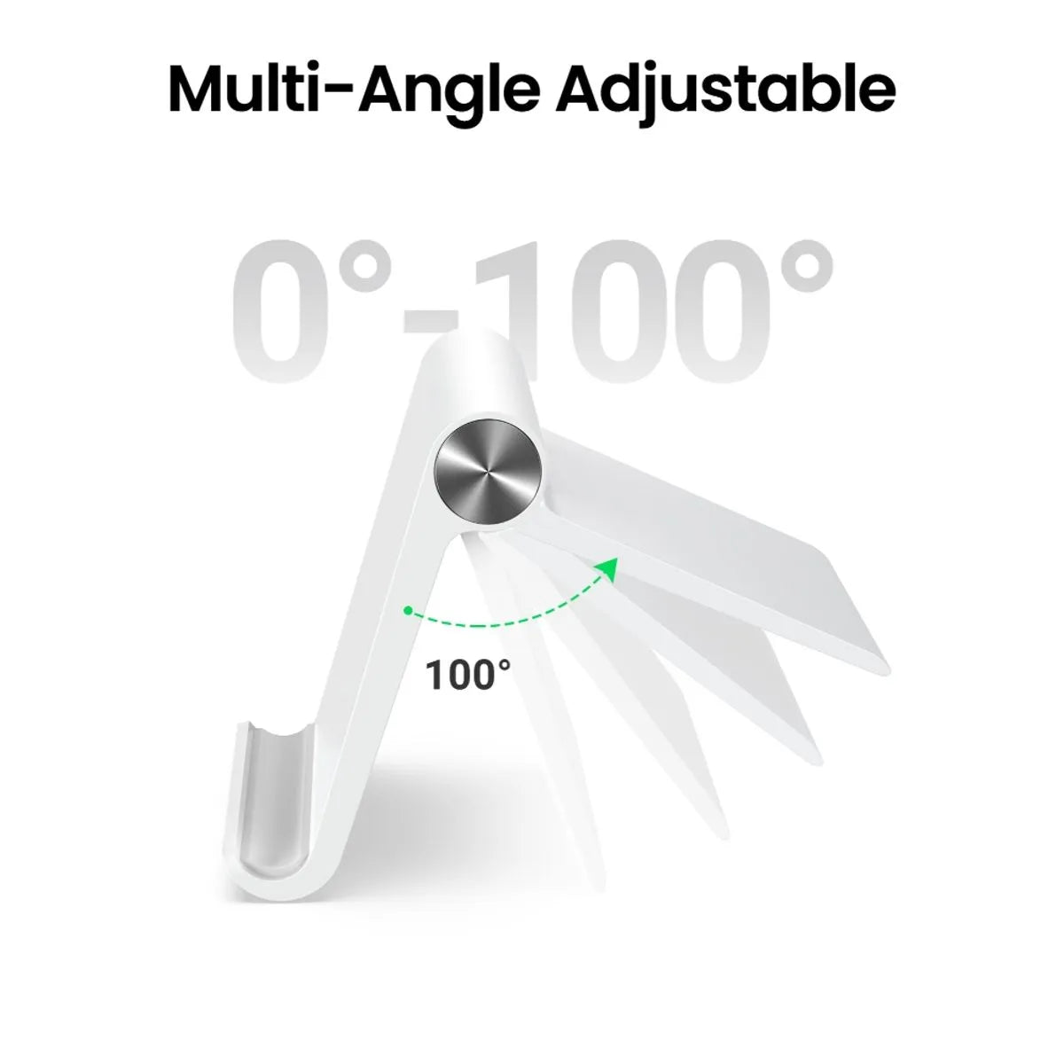 *AJUSTABLE EN MÚLTIPLES ÀNGULOS. Ajuste directamente a su ángulo preferido de 15° a 100°. La base de soporte de escritorio UGREEN puede sostener su teléfono inteligente o tableta en un ángulo cómodo, ideal para ver videos, leer, grabar videos, navegar por la web, hacer llamadas en tiempo real y más operaciones con manos libres.