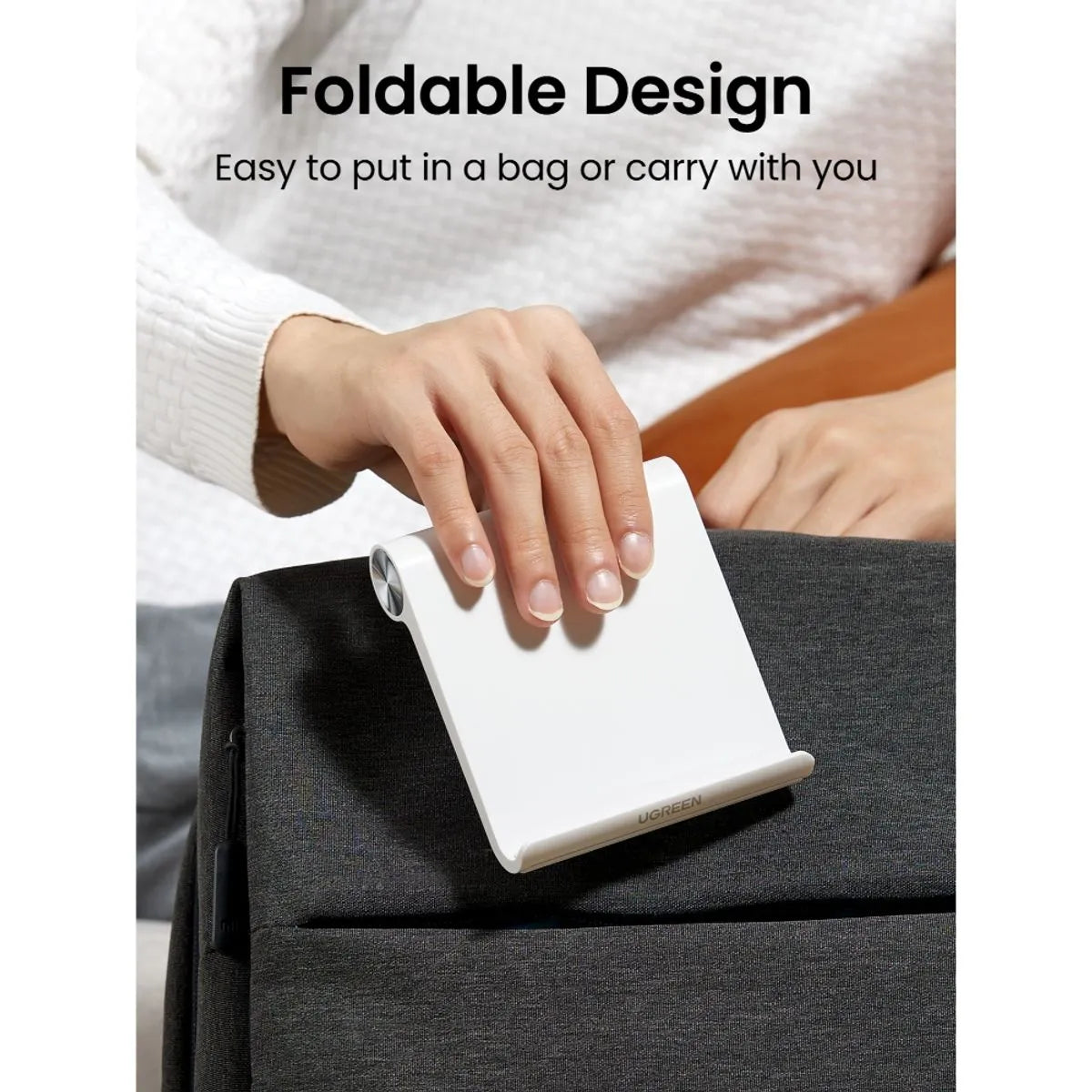 *PORTÁTIL Y LIGERO. Con un tamaño pequeño de 4,7' x 4,2' (120 mm x 107 mm), el práctico soporte para tableta UGREEN para iPad es plegable y fácil de deslizar en su bolsillo para viajar. Puede colocar fácilmente este soporte en el escritorio de su cocina, oficina, sala de estar, dormitorio y más superficie horizontal que desee.